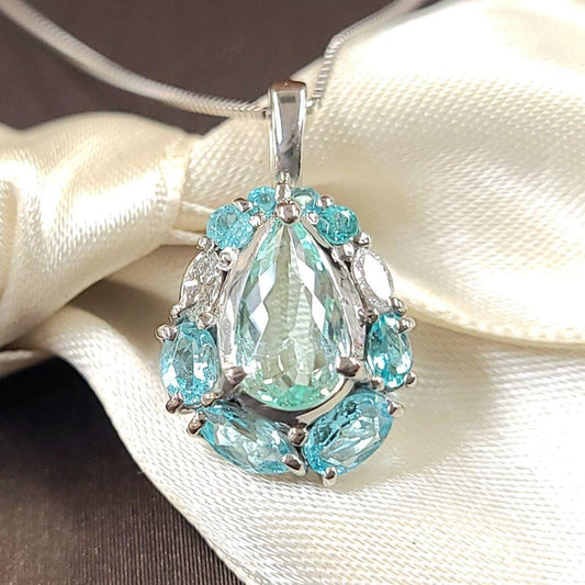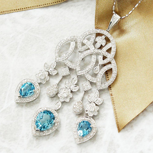 6ct ペアシェイプ ブルートパーズ ダイヤモンド K18 WG ホワイトゴールド シャンデリア ペンダント ネックレス 11月の誕生石 18金 【鑑別書付】