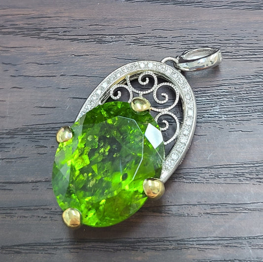特大 39ct 天然 ペリドット ダイヤモンド K18 YG イエローゴールド 18金 ペンダントトップ ヘッド 8月誕生石 【鑑別書付】
