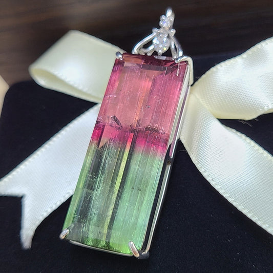 自然の神秘 奇跡の色彩 バイカラー 天然 トルマリン ダイヤモンド Pt900 プラチナ ペンダントトップ ネックレス ヘッド 10月誕生石 【鑑別書付】