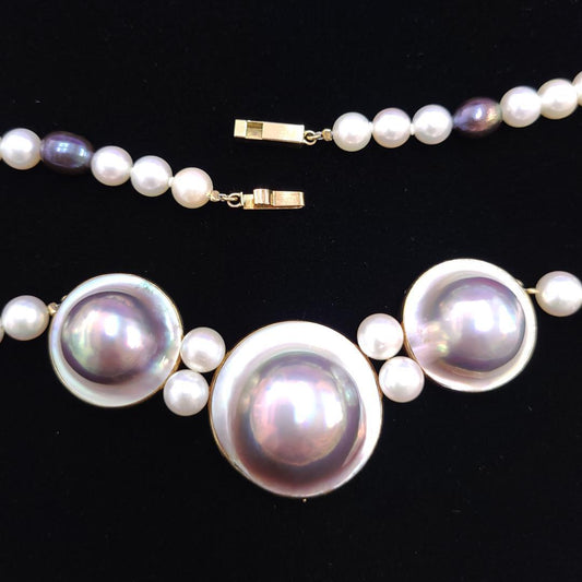 自然の美しさ 存在感抜群 マベパール ネックレス K18 YG イエローゴールド 18金 真珠 パール ペンダント 6月誕生石 【鑑別書付】