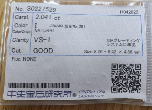 [Central Treasure Appraisal] Powerful large grains 2.041ct, I color, VS-1, GOOD natural diamonds loose Round Brilliant Cut