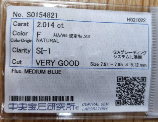 [Central treasure appraisal] Glittering colorless transparent 2ct / F color / SI-1 / VERYGOOOD Natural Diamond loose Round Brilliant Cut