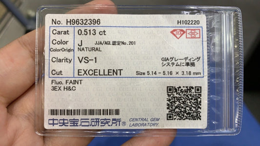 [Central treasuregrading report] H & C / 0.513ct / J Color / VS-1 ・ 3EX Natural Diamond loose Round Brilliant Cut Diamond