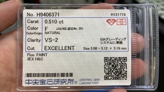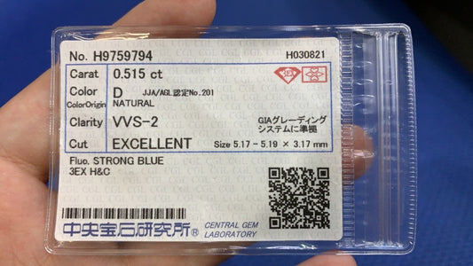 [Central treasuregrading reportAt] H & C / D color / 3EX / 0.515ct / VVS-2 Natural Diamond loose Round Brilliant Cut Diamond