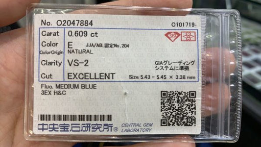 [Central treasuregrading reportAt] H & C / 3EX / 0.609ct / VS-2 / E Color Natural Diamond loose Round brand cut