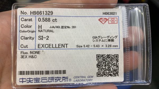 [Central treasuregrading reportAt] H & C / 3EX / 0.588T / SI-2 / H Color Natural Diamond loose Round brand cut