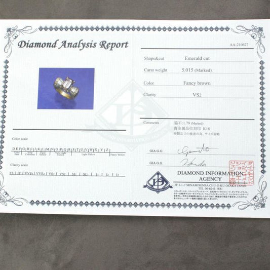 【grading reportAttached] Rare large grains 5ct VS-2 Emerald Cut Natural Diamond K18 Y G Yellow Gold Ring Ring Ring 18 Gold