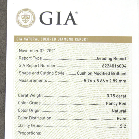0.75ct Fancy Red Natural Red Diamond loose Cushion cut fan seed red [with GIA certificate]