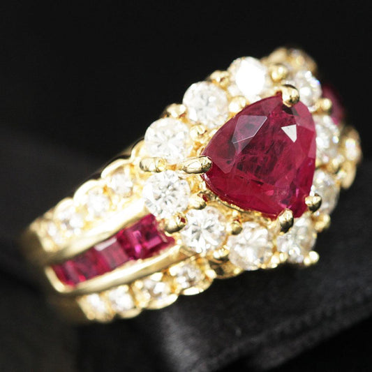 Fashionable 1.52ct Ruby 1CT Diamond K18 YG Yellow Gold Ring Ring July Birthstone 18 Gold [identification report]