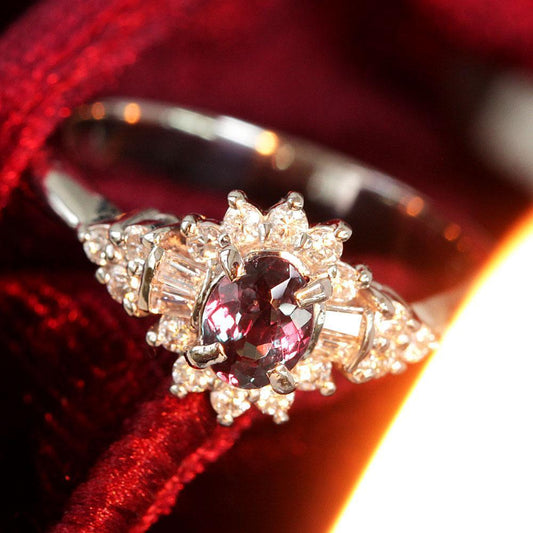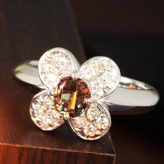 Color Changes Alexand Light 0.7ct Diamond PT900 Platinum Flower Ring Ring June birthstone [identification report]