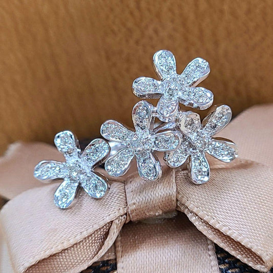 Stylish 0.5ct Diamond K18 WG White Gold Flower Ring Ring 18 Gold April Birthstone [identification report]