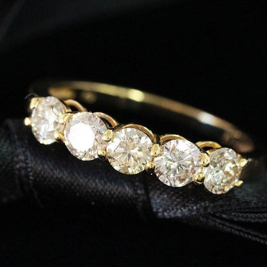 Teritelli! Gorgeous! Heart Cue H & C 1CT Natural Diamond K18YG Yellow Gold Half Eternity Ring Ring 18 Gold [identification report]