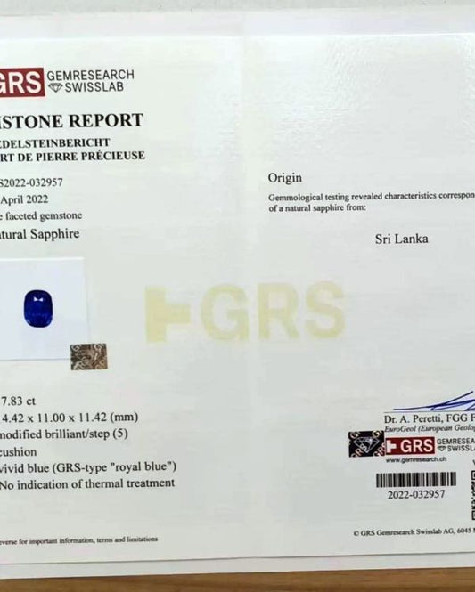 Sri Lanka World's World Highest quality Super Great Grain 17.83ct Non -heated Royal Blue Natural Sapphire loose[With GRS identification book]