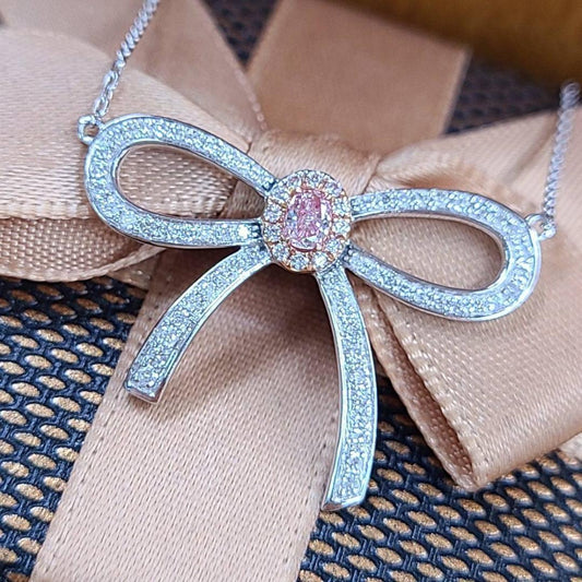 Pink Diamond Diamond K18 K18WG White Gold K18PG Pink Gold Ribbon Pendant Necklace 18 Gold Birthstone [identification report]