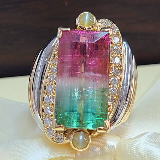 Bicolor Torumarine Crybelil Cats Diamond K18 Yellow Gold 18 Gold Ring Ring October Birthstone [identification report]