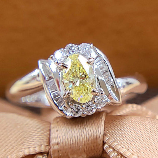 Fancy Yellow Diamond Oval Pt900 Platinum Ring Ring April birthstone [CGLgrading report]