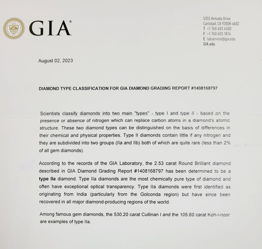 The world's highest quality! Perfect Natural Diamond 2.53CT D Color FLAWLESS 3EX Type2a Round Brilliant Cut loose [GIA grading report]