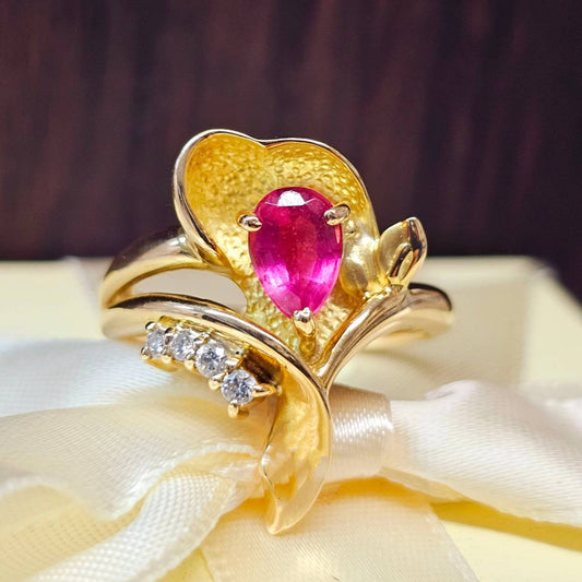 Elegant Pink Tolmarin Diamond K18 YG Yellow Gold Ring Ring 18 Friday October Birthstone [identification report]