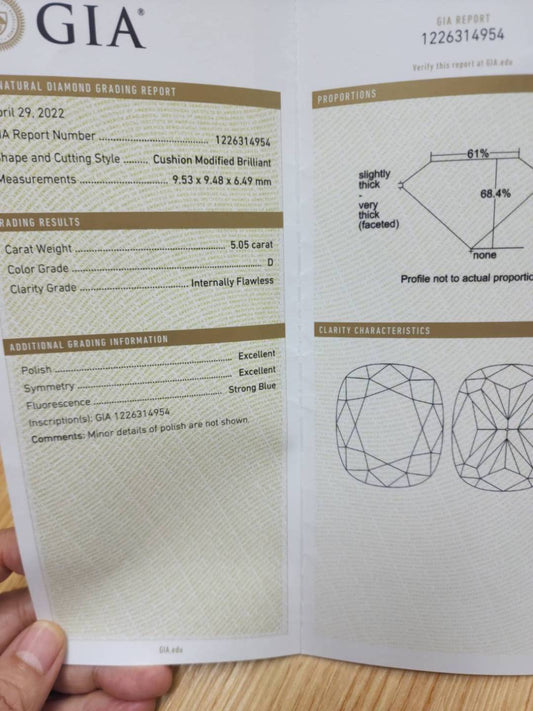 Completely colorless intact complete cut! 5ct D color if 2EX Cushion Cut Natural Diamond loose[With GIA certificate]