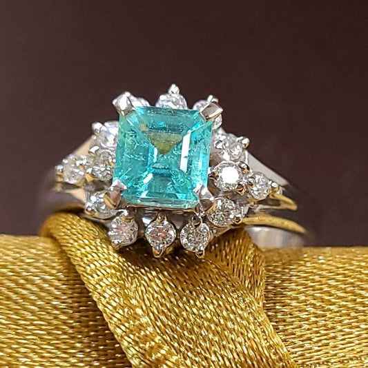 Rare 0.56ct natural paraiba tourmaline Diamond PT850 Platinum Ring Ring [with GIA identification]
