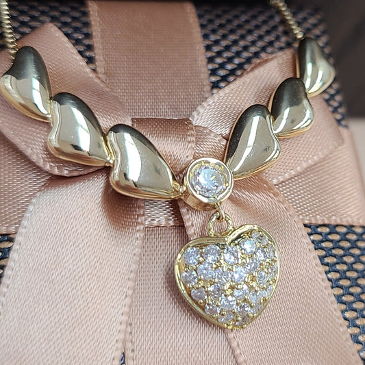 Swinging natural diamond K18 yg Yellow Gold Pave Heart Pendant Necklace April Birthstone [identification report]