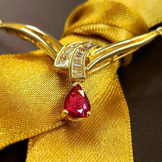 Shaking and shining 1CT Natural Ruby Diamond K18 yg Yellow Gold 18 Gold Pendant Necklace July Birthstone [identification report]