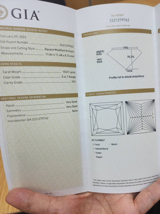The best status & asset! Super large grain glare! 10.01ct VS-1 Square Brilliant Cut Natural Diamond loose[With GIA certificate]