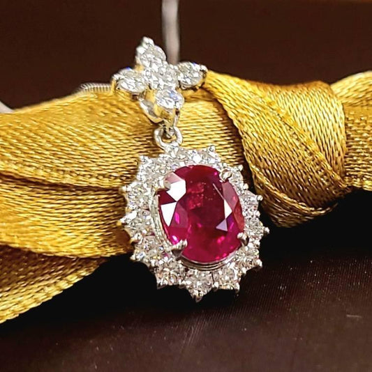 The finest! 1.2ct Ruby 0.47ct Diamond PT900 Platinum Pendant Necklace July birthstone [identification report]