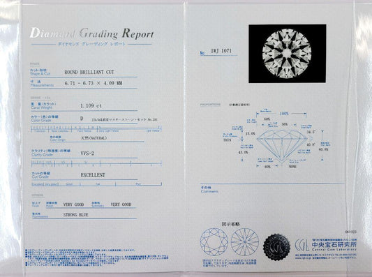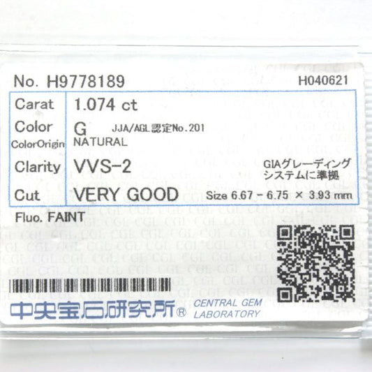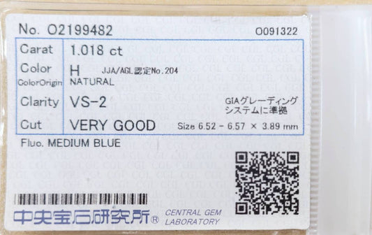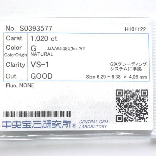 1.018ct H VS-2 VERY GOOD Diamond loose 【CGLAppraisal]