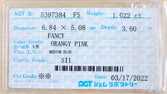 1.022ct Fancy Orangy Pink Si-1 Natural Pink Diamond loose Oval cut