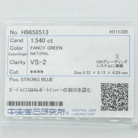 1.540ct Fancy Green VS-2 Natural Natural Green Diamond loose Cushion cut [CGLAppraisal]