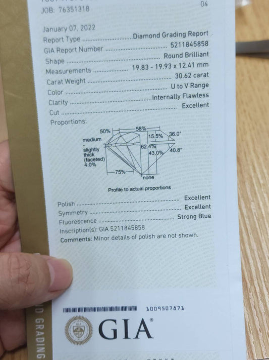 Super oversized 30.62ct if 3EX natural diamonds loose[With GIA certificate]
