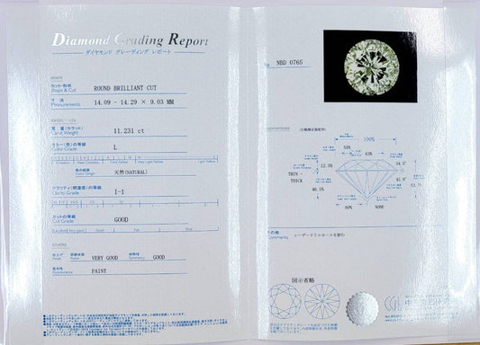 11.231ct L Color GOOD Natural Diamond loose Round Brantant Cut [CGLgrading report]