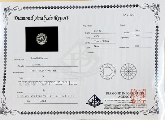 11.231ct Natural Diamond K Color GOOD Platinum PT900 6 Nail One Ring Ring Ring April Birthstone [grading report]
