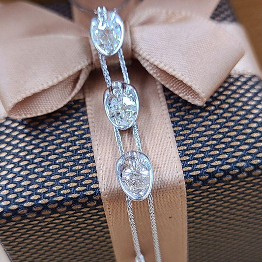 1CT Diamond K18 WG White Gold Trilogy Dancing Pendant Necklace April birthstone 18 gold [identification report]