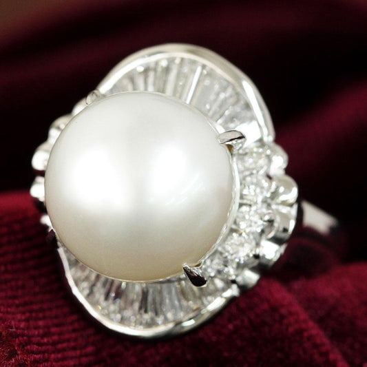 12mm South Sea Pearl White Butterfly Pearl Pearl Natural Diamond Platinum PT900 Pearl Pearl Ring Ring June Birthstone [identification report]