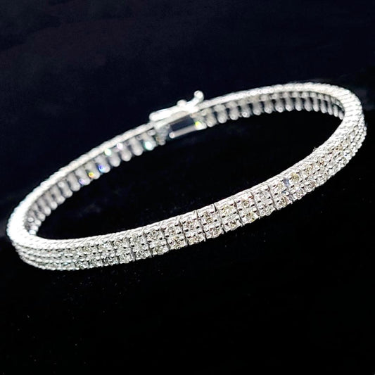 Stylish! Double-strand 3.5ct natural diamond K18 WG white gold bracelet [...identification reportWith