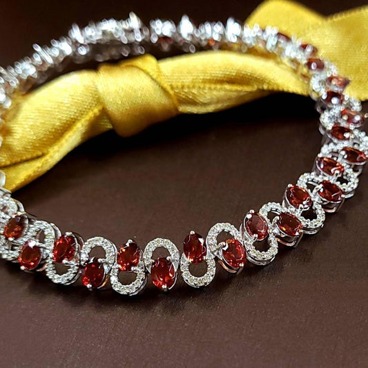 Brillvia 9ct Garnet 1CT Diamond K18 WG White Gold Bracelet January Birthstone 18 Gold [identification report]