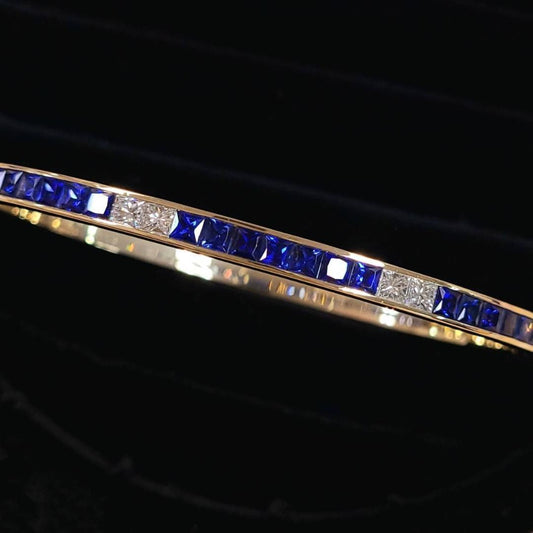 3.5ct Natural Sapphire Diamond K18 Y Gold Princess Cut Bracet Bangle 18 Gold September Birthstone [identification report]