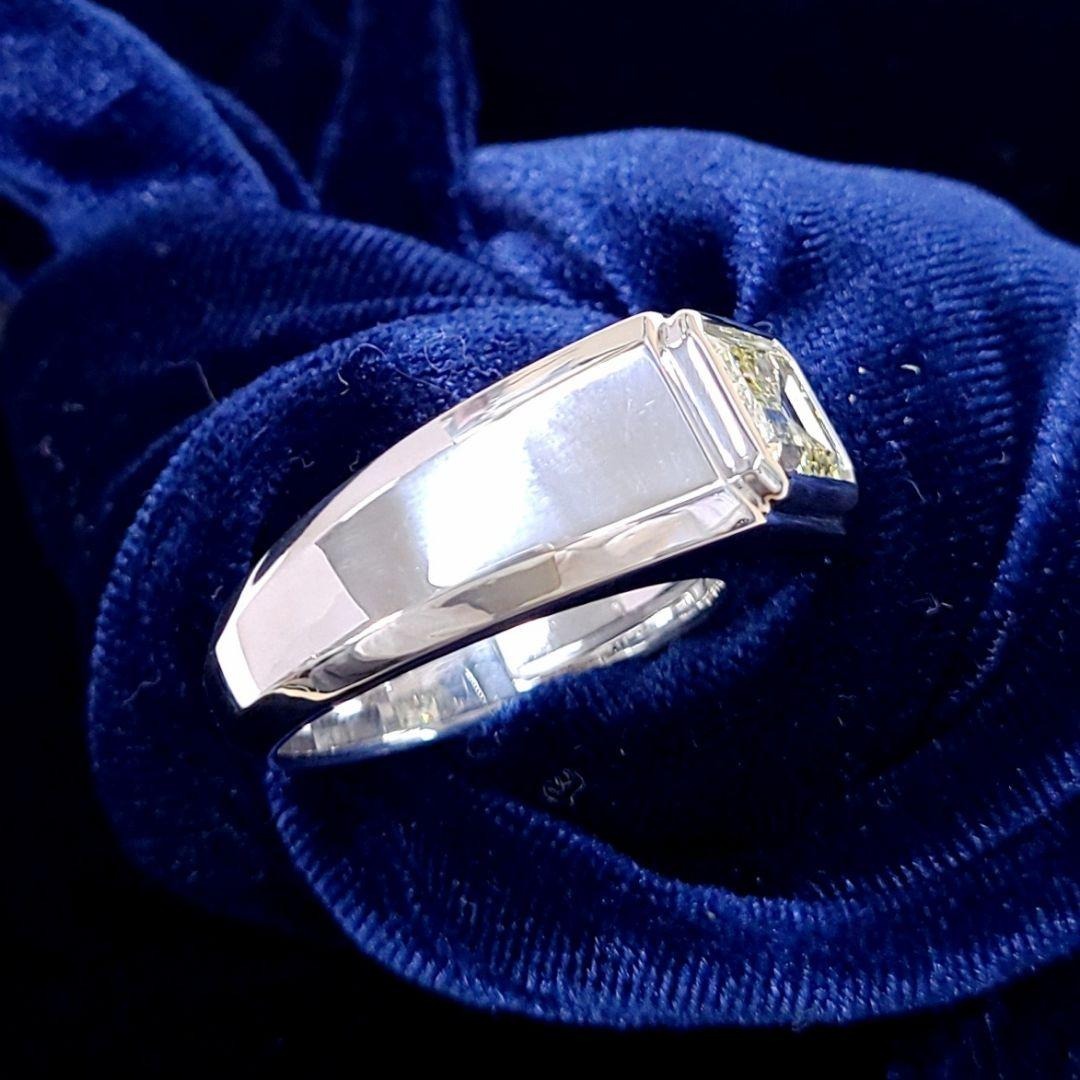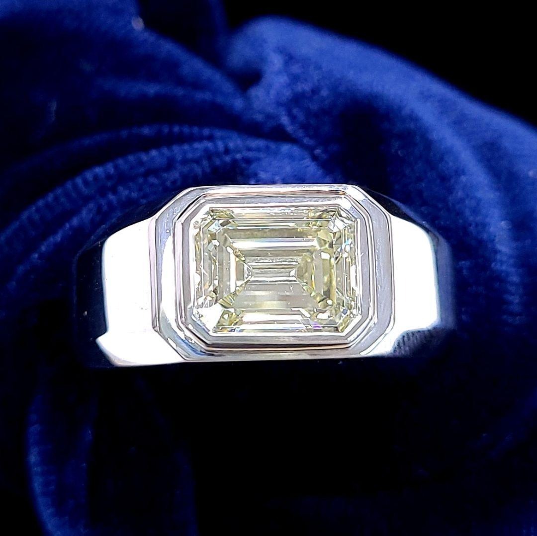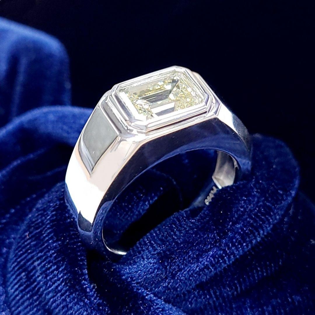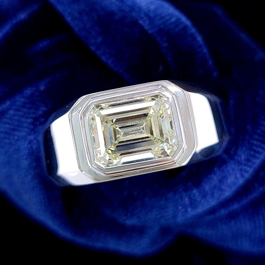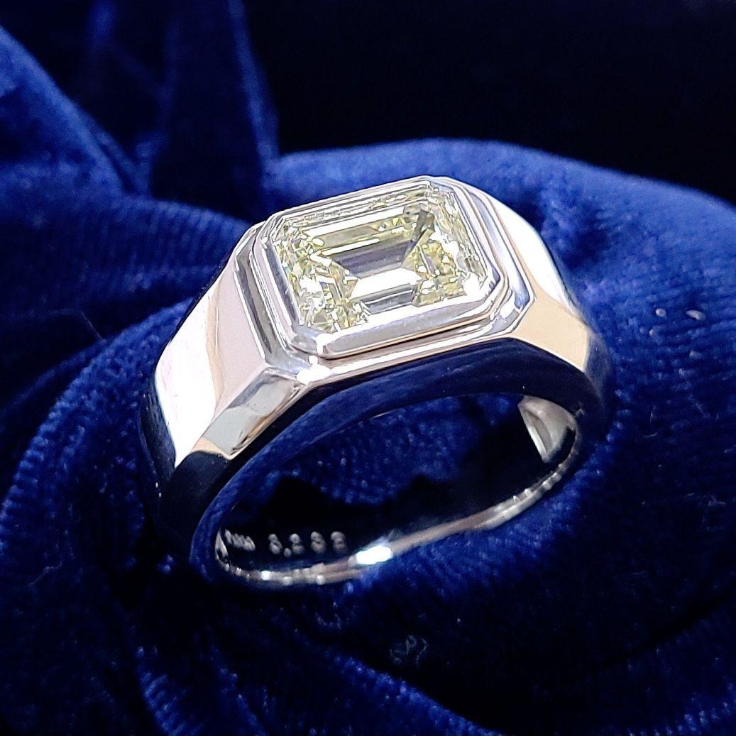 This emerald-cut diamond ring is suitable for both men and women and has an overwhelming presence.