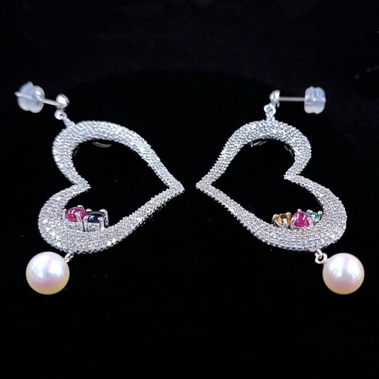 2ct 다이아몬드 아 코야 진주 K18 WG 화이트 골드 오픈 하트 포장 진주 뚫린 출생석 18 골드 [차이]
