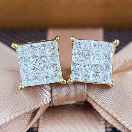 보석 예술! 1ct 다이아몬드 K18 yg 옐로우 골드 스퀘어 귀걸이 4 월 18 골드 [차이]