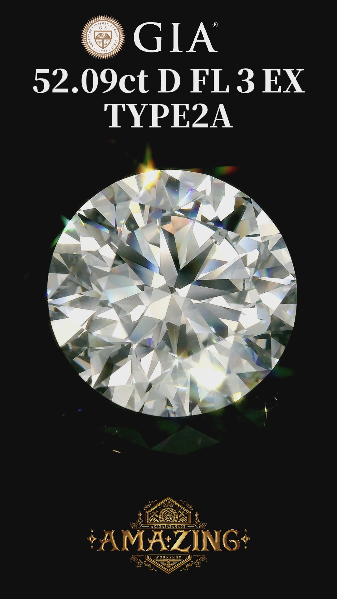 그중 52.09ct d fl 3ex type2a는 확실히 최고, 최고 품질이며 결함이없는 완벽한 다이아몬드입니다.