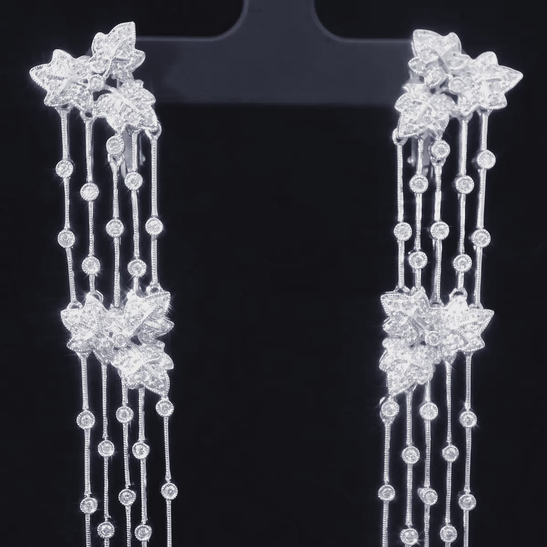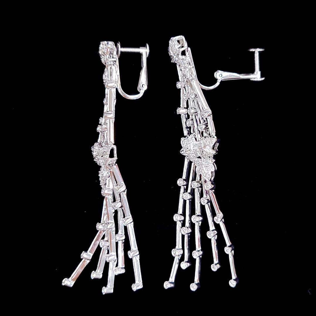 耳元でゆらゆらと揺れるたびに、ダイヤモンドがキラキラと輝き、まるで雨の中で蝶が飛んでいるような幻想的な光景が広がります。