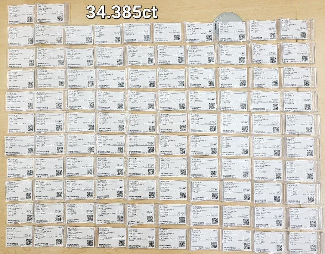 究極の輝きを纏う、比類なき資産。 すべて中央宝石研究所ソーティング付き、34.385カラット。