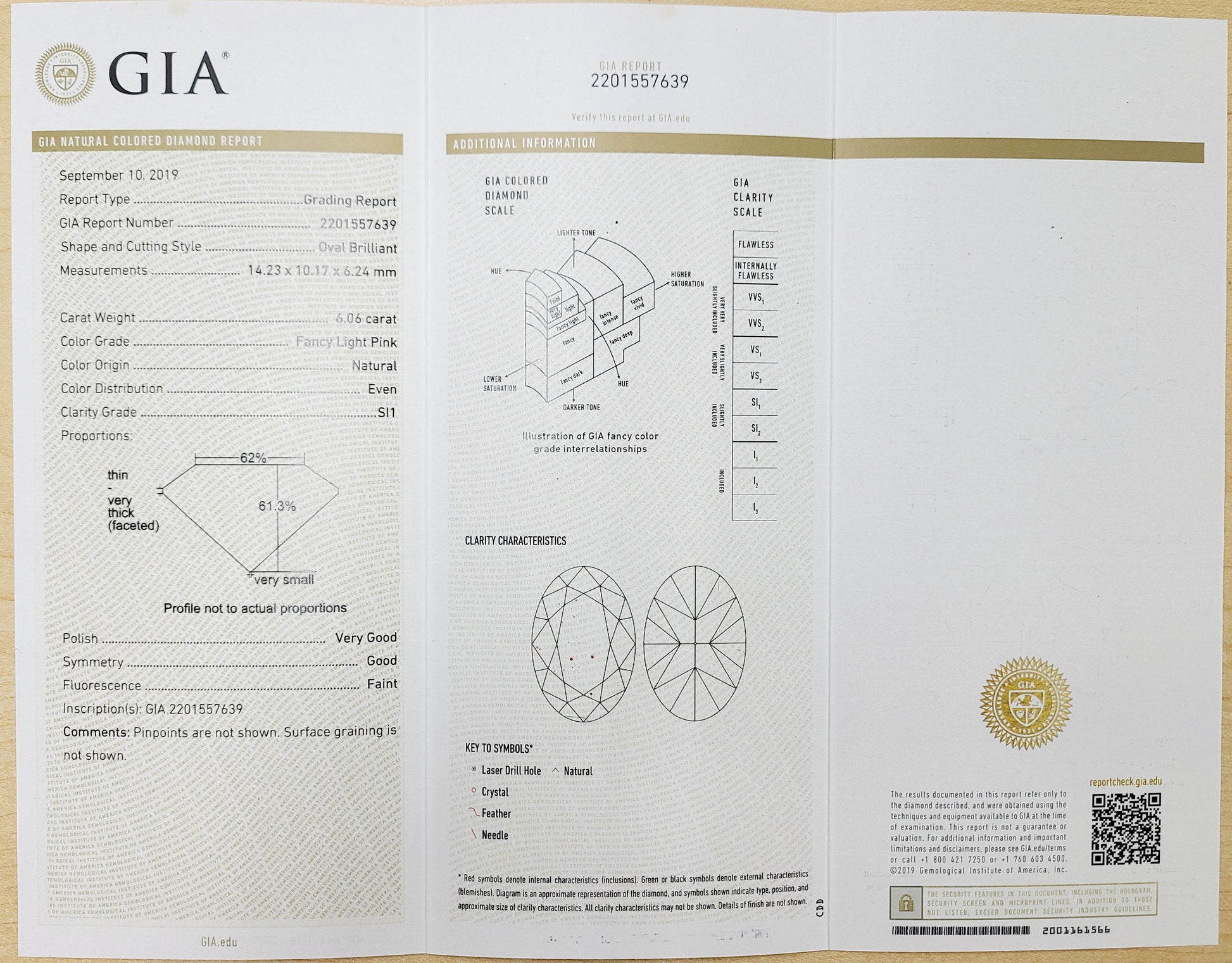 GIA鑑定書付 "Fancy light pink"