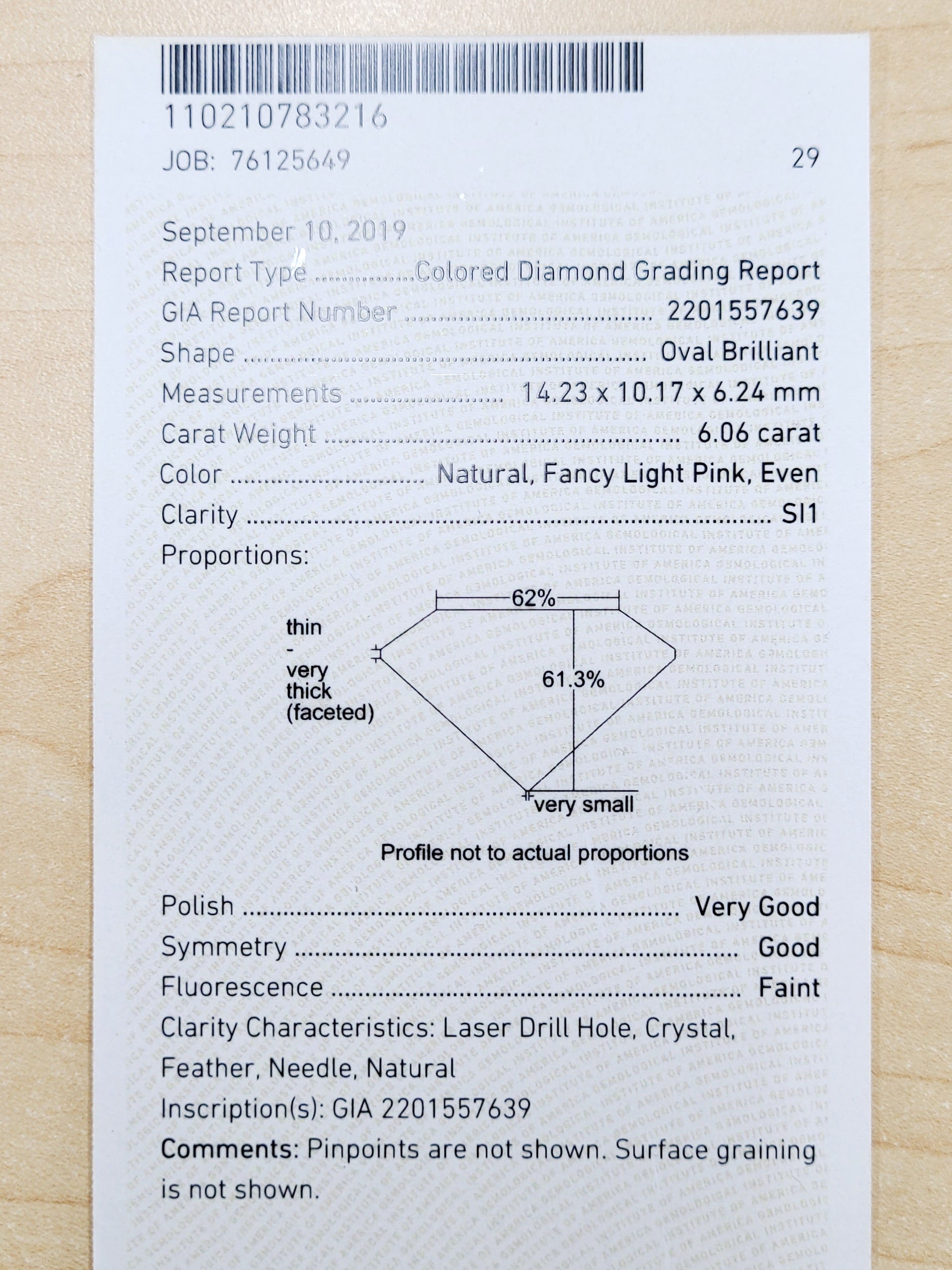 天然ピンクダイヤモンド 6.06ct (Fancy light pink / SI1 / Oval Brilliant) |