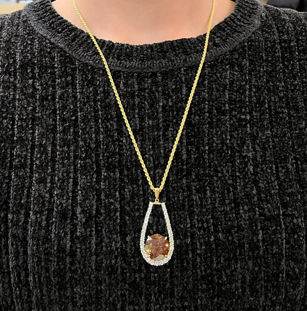 存在感抜群!11ctもの大粒、落ち着きのある深みが魅力のブラウンダイヤモンドペンダントネックレスです。